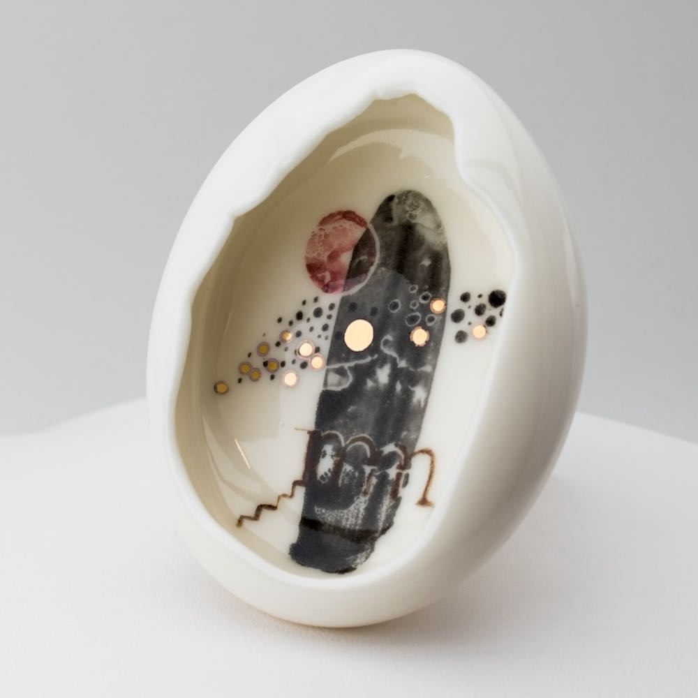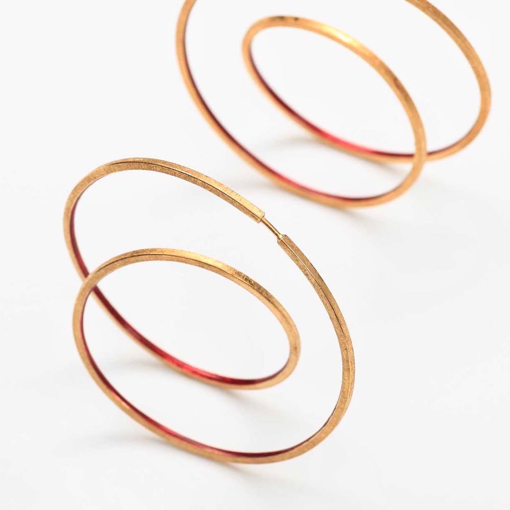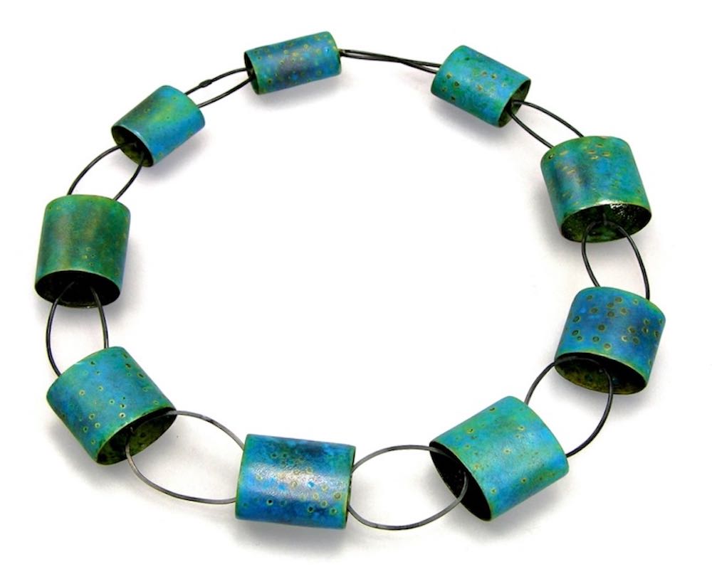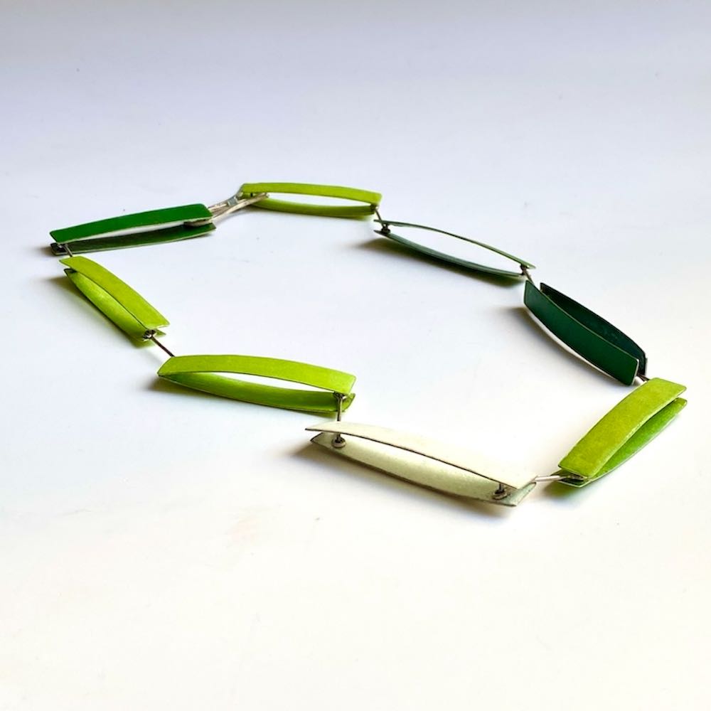 Die hier gezeigten Arbeiten besitzen neben ihrer formalen Ausdrucksweise eine gewisse Leichtigkeit. Man möchte sie anfassen und tragen. Akzente in Gold, Silber oder Platin untermalen die Wertigkeit. Ob über Emaille oder geschmolzene Kunststoffe: Der Hauch an Farbe lockert die Stücke auf.