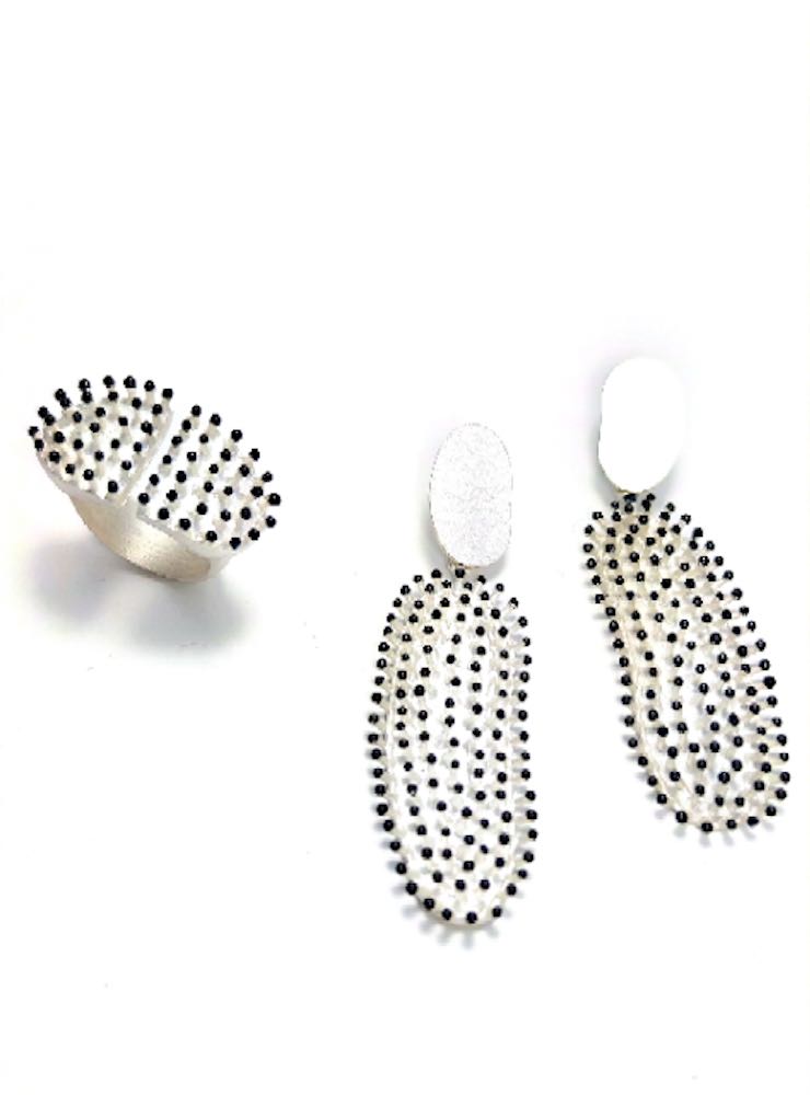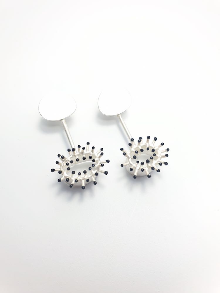 Die stacheligen, filigranen Formen modelliert sie in Wachs, anschliessend werden sie dann in Silber gegossen.