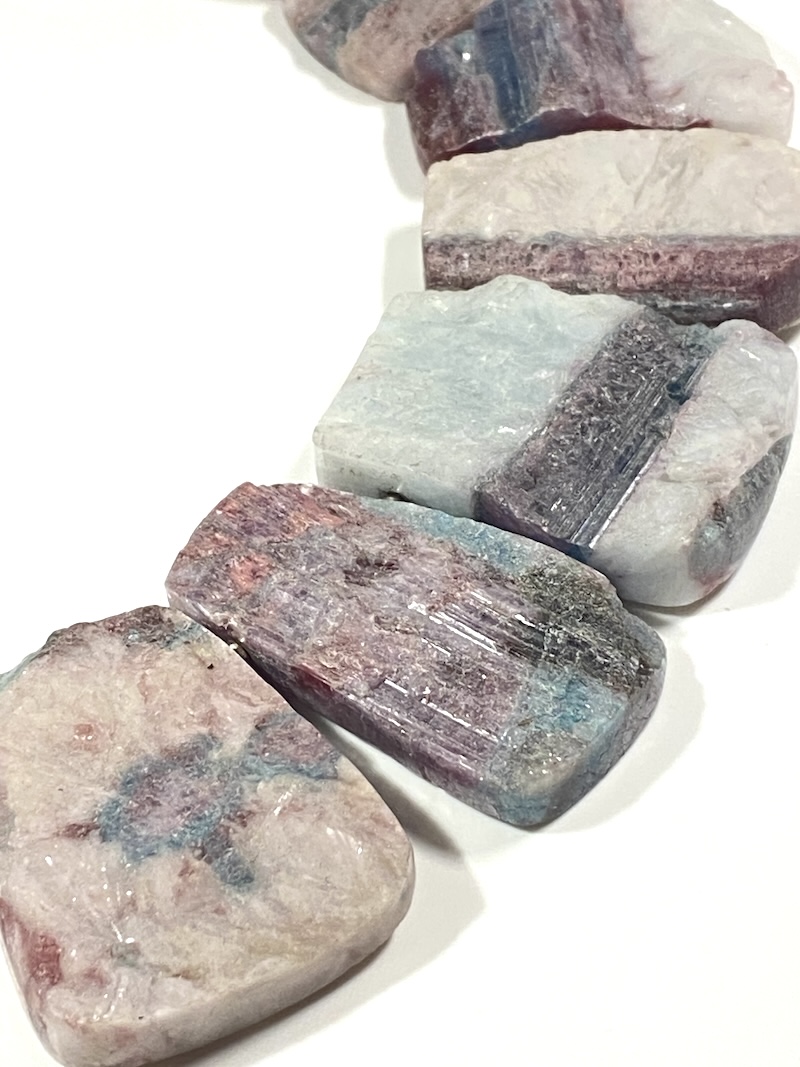 Diese besondere Kette entstand aus einem einzigen grossen Stein, der in vielen kleineren Schnitten, per Hand gesägt und geschliffen wurde.