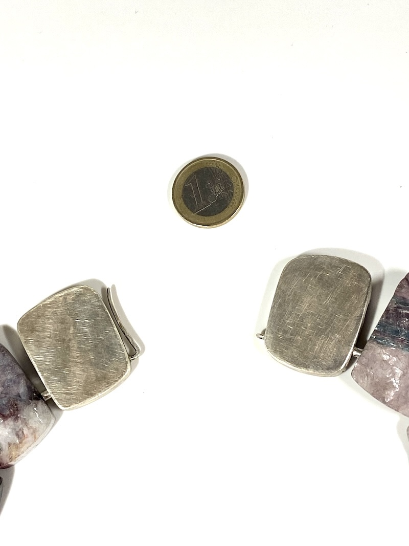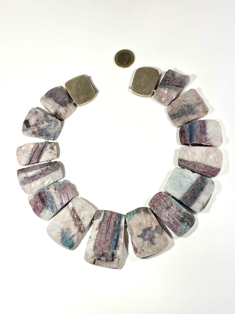 Für alle, die sich mit Steinen auskennen, eine Rarität! Das Schloss ist aus 2 Silberkörpern gearbeitet, in der Form den Steinen nachgebildet, die Kette kann noch in der Länge genau angepasst werden, jetzt ist das Innenmass 49cm. Die gleichmässige Form legt sich überraschend gut an.